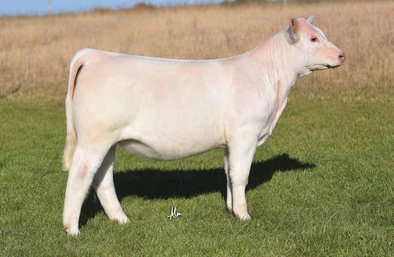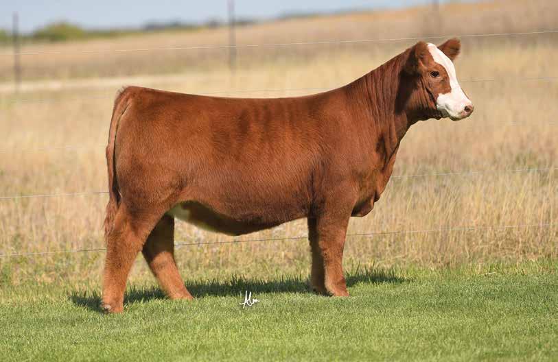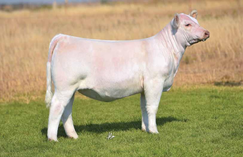 An exceptional show heifer prospect that is sure to turn heads in the ring and make an impact in the pasture. This heifer is the perfect blend of style and substance, boasting a long, elegant neck that transitions into a bold body and added power. She is wild-featured with an eye-catching profile, combining femininity with a striking, shapely build. She’s level and square, laying the foundation for a wide hip and a flexible set of feet and legs. She is a Serena, making her a maternal sister to a countless number of champions and high sellers, indicating her potential as both a show stopper and a future cornerstone in any breeding program. With her balanced structure, clean lines, and eye appeal, this heifer is ready to excel in the show ring and beyond. Don’t miss the chance to add this high-caliber female to your herd!