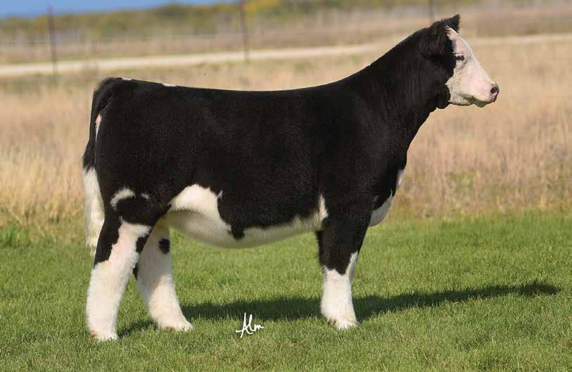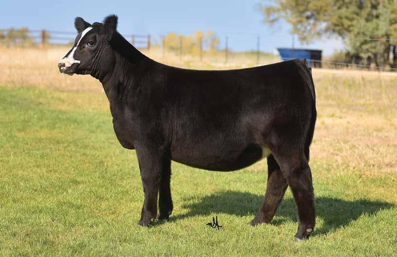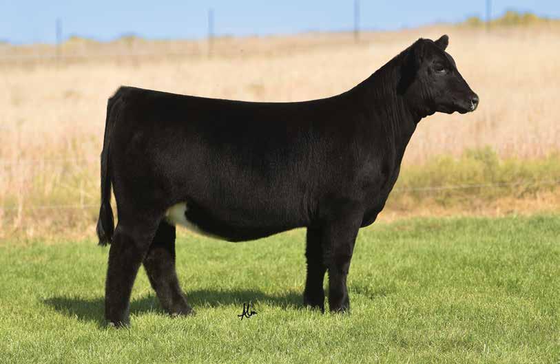 Fun purebred Simmental here. Long and smooth, yet pried apart and bold centered. This big boned, high tying Rebel daughter is tough to pick a hole in, and brings a lot of good to the table. A shapely yet smooth muscled, big outlined individual that sports an incredible head carriage and neck set, and drops back to such a dimensional package, but totes all that punch around with a comfortable spine, soft pastern, and flexible skeleton. A square made, jet black female backed by all the cow power and banners you could possibly imagine. Her donor dam, 18H, was top 5 at every show she attended, starting at Kansas Beef Expo, Kansas State Fair, Aksarben, and was Reserve Purebred at American Royal. 18H’s maternal sister happens to be Pryor’s Copacetic that was Supreme at Iowa Beef Expo and Reserve at Jr. Nationals, and her full sister just commanded 180K for Chad Holtkamp last month, to say there is power in the blood would be an understatement. 18H echoes much of the same kind and outline as her mother, with more power, and a taller front end construction and striking look.