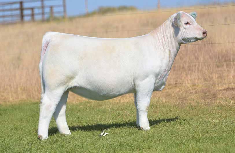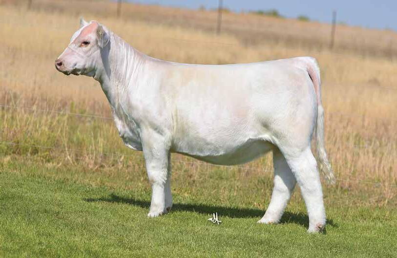 Regardless of your avenue of production, this OMF Journeyman daughter fits into an array of program wants and needs. One with a flexible pedigree for both bull and female production, she’s as burly and chalked full of power as anything in the offering, yet has a neck that shoots directly out the top of her shoulder with unlimited presence and poise. A massive center cavity and bold sprung rib cage, and struts around with a skeletal setup so loose and comfortable that if she wasn’t DNAed, I’d argue she wasn’t a purebred Simmental. Big, round bones that bend and flex with ease, this soft, thick haired baldy has it goin on. Backed by the immortal Vicki Donor of Werning and Hicks. She’s raised countless high sellers, champions, and herd sires, and her daughters are going on to do the same. Including the maternal sister to this female that just raised Weis’s $106,500 high seller. Bid early, and bid often, Jared Werning raised this one, and since he finally bought Kassi a ring, he’s about to have a whole other mailbox full of bills.