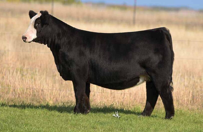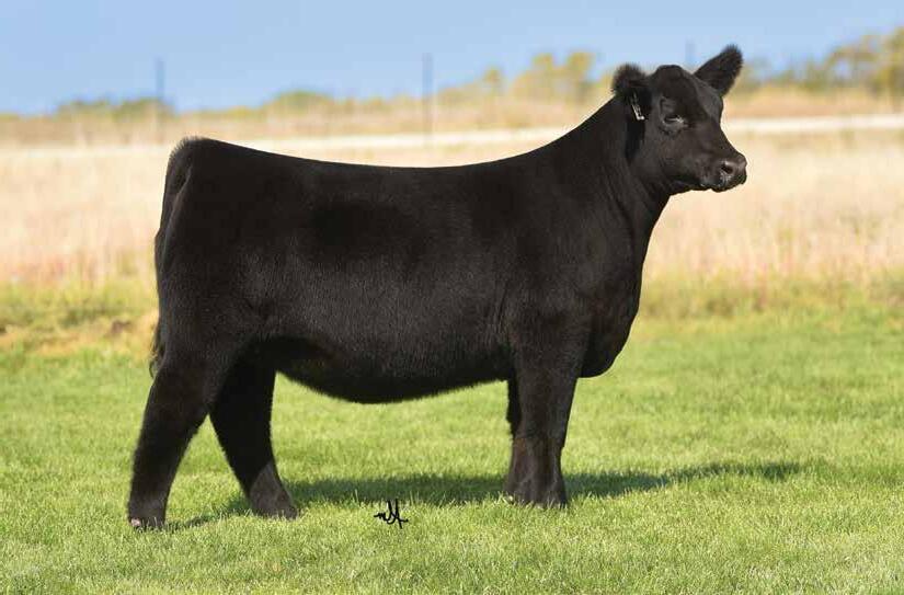 To put it plain and simple, good beef. Long, level, smooth, soft, sound, and attractive. She covers all the bases to be dubbed complete, but tacks on some extra bone, a mouthwatering neck attachment and ear set, and the natural presence that gets noticed and praised in the ring. Square and coordinated in her mobility off either end, perhaps the most intriguing part about lot 8 is her versatile pedigree. Being a Vegas, out of 6188 (Double Black x Century Impressive/Traveler 004), she is free of First Class, Primo, Lutton, Insight, and opens the door for a broad horizon of mating schemes, whether you’re shooting for bulls or females. Her mother brings the whole equation together, a cow that hasn’t missed and has rapidly become a mainstay in our program as well as Brian Johnson’s. She raised our $70,000 high seller last fall, and averaged $30,000 on 5 head out of 3 different sires. With daughters making top 5 at state fairs, Aksarben, jackpots all over, more impressive is that they’re going on to raise an entirely new list of high sellers themselves, including the $72,000 high seller for MPJ a few weeks ago. A sweet natured, awesome built, hole free female that you can’t go wrong with.