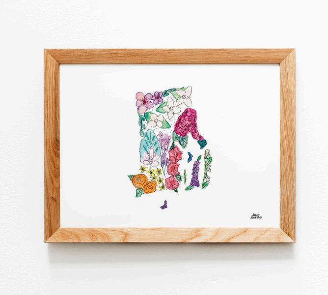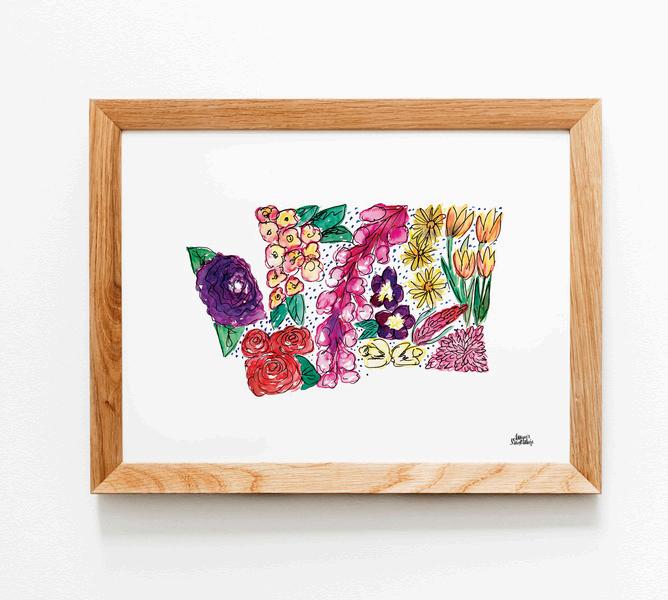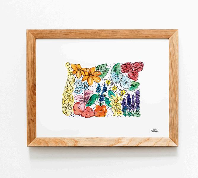 5x7 and 8x10 - FLORAL STATE PRINTS - $6 and $12.50 - MOQ: 3