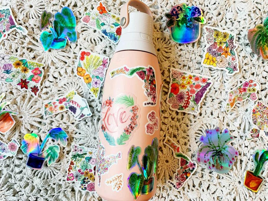 3" DIE-CUT - FLORAL STATE STICKERS - $1.75 - MOQ: 10