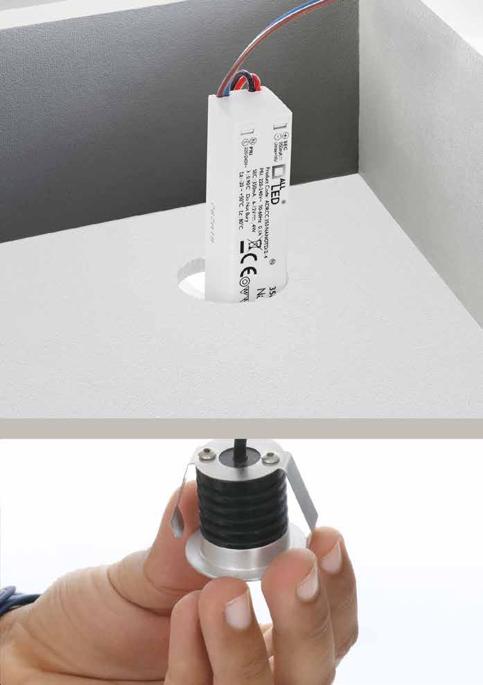 Designed in the UK to replace the standard junction box, the Smart-E contains push terminals and a hand operated cable clamp with ample room for wiring. The innovative, clean and crisp design which contains technology patented by All LED also fits through a 55mm spotlight hole. It is a fully retrofit solution which works with all existing wiring and provides hop and mesh technology.