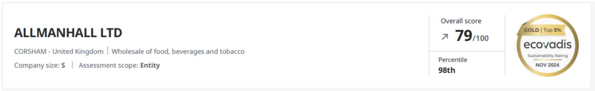 As part of allmanhall’s commitment to ensuring that good food shouldn’t cost the Earth, we continue to prioritise sustainability and ethical practices through annual ESG (Environmental, Social, and Governance) audits conducted by EcoVadis.
