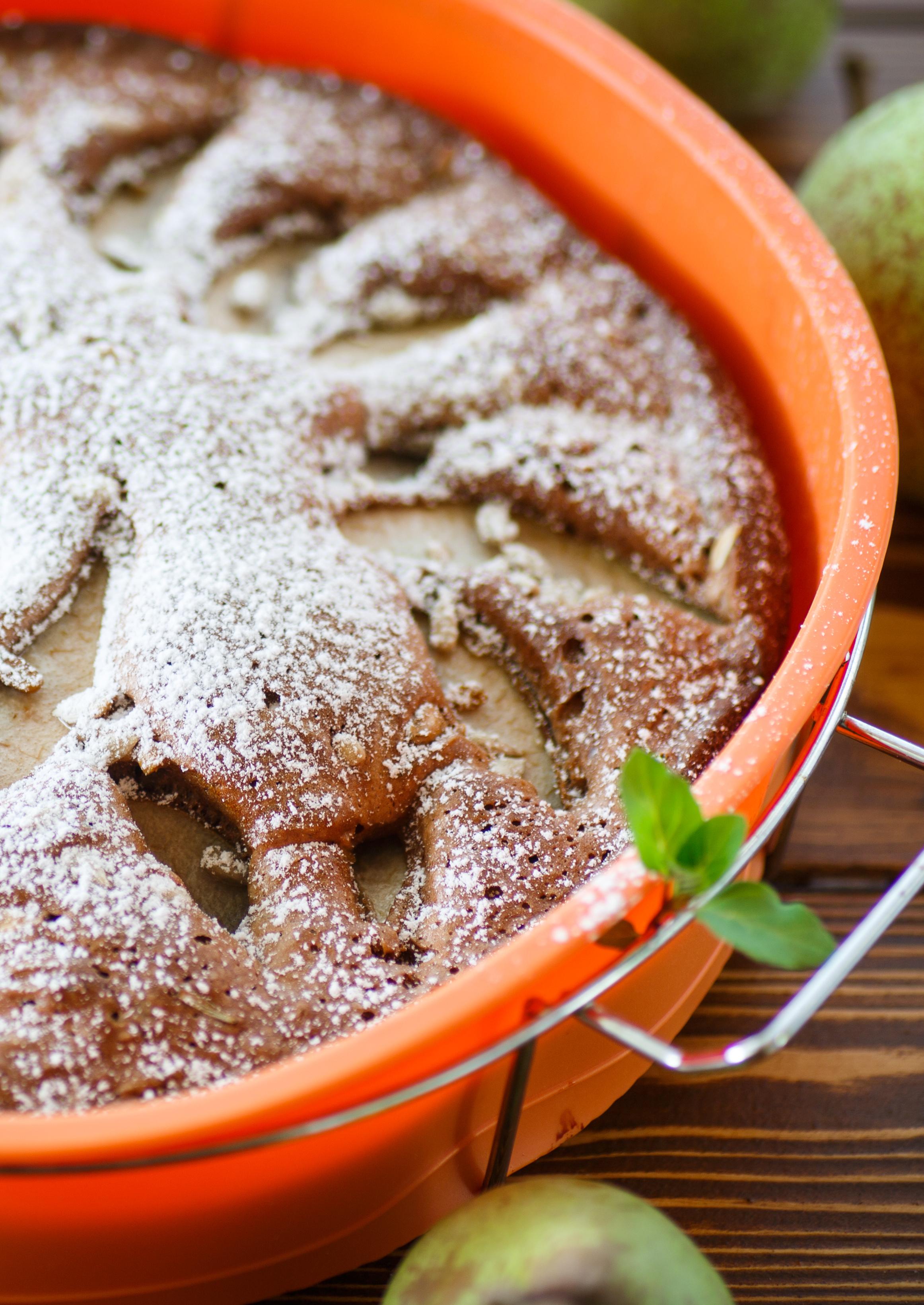 6. Pour mixture over the pears and bake in the oven for 30 minutes until cooked in the center.