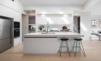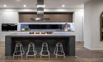 •Choice of 2 overhead cabinetry design options –Handleless 15mm overhang finger pull overhead cabinetry or 2x floating shelves on either side of custom laminate box style rangehood cover (design specific)
