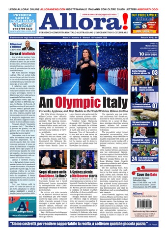 LEGGI ALLORA! ONLINE ALLORANEWS.COM SETTIMANALE ITALIANO CON OLTRE 25,000 LETTORI ABBONATI OGGI Periodico comunitario italo-australiano informativo e culturale