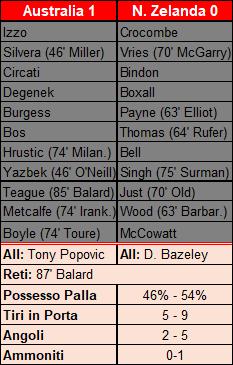 Socceroos: Aus – NZ 1-0 Decide Balard nel finale