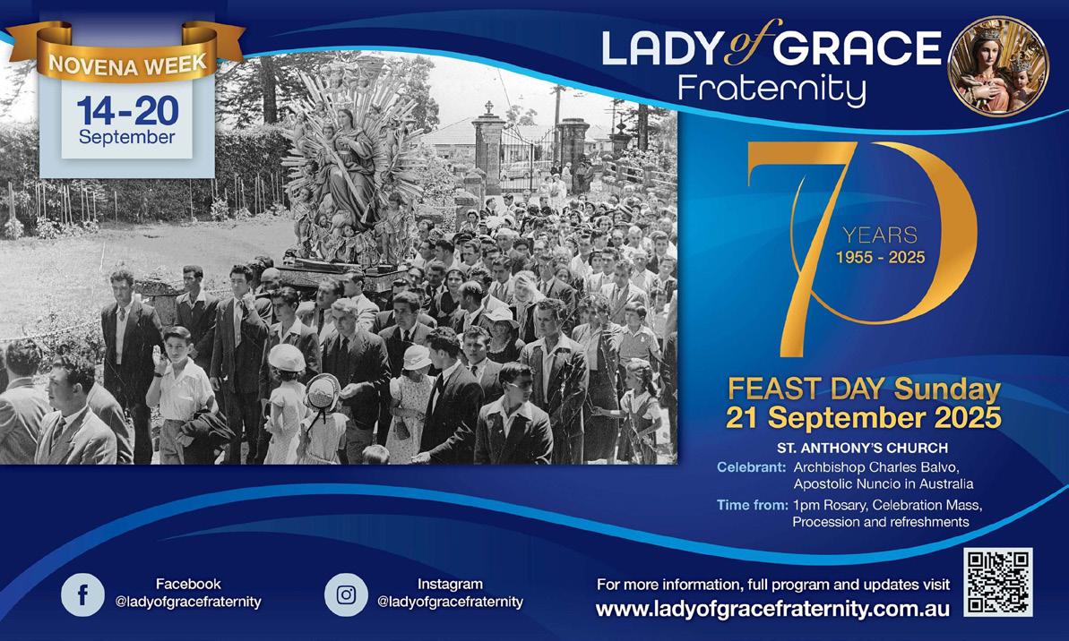 Il santo rosario sarà recitato mercoledì 10 settembre 2025 alle ore 18.00 nella Cappella di San Tommaso, 1A Wilson Crescent, Narellan.