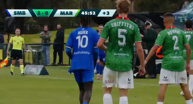 La squadra di Tsekenis ha agevolato il compito al South Melbourne con un inizio di gara timido che ha consentito ai padroni di casa di affacciarsi sottoporta più volte. Il gol che ha sbloccato la partita all’11’ ha avuto inizio proprio da un passaggio impreciso e distratto che ha favorito il velocissimo Aguek che impossessatosi del pallone ai 40 metri saltava in velocità il suo avversario, si presentava in area e batteva l’incolpevole Hilton.