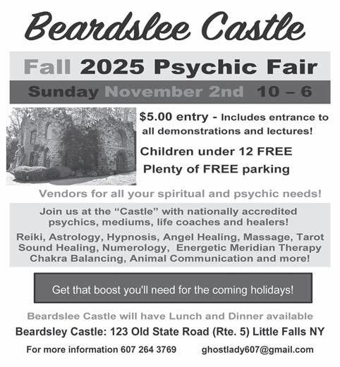 9:30 a.m. to 4 p.m. “All Souls Spirit Fest.” Workshops, vendors, psychic readers, energy healers, unique gifts and more. Free admission. The Institute for Spiritual Development, 297 River Street Service Road, Oneonta. (607) 433-2089.