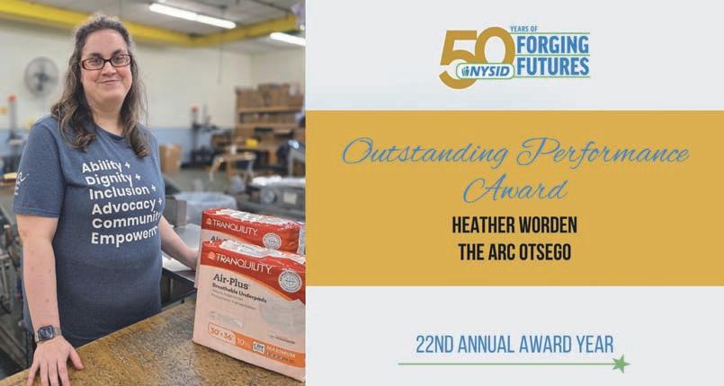 Arc Otsego production worker Heather Worden received NYSID’s “Outstanding Performance Award” at the organization’s Annual Meeting and Awards Ceremony in October. Worden has been a member of Arc Otsego’s Creekside Industry team since 2008.