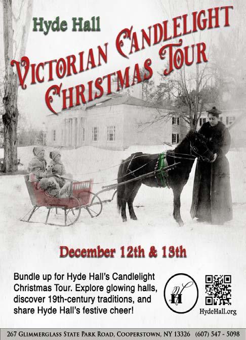 CHRISTMAS 4 p.m. “Victorian Candlelight Christmas Tour.” Tickets required. Also held 12/13. Hyde Hall, 267 Glimmerglass State Park Road, Cooperstown. (607) 547-5098.