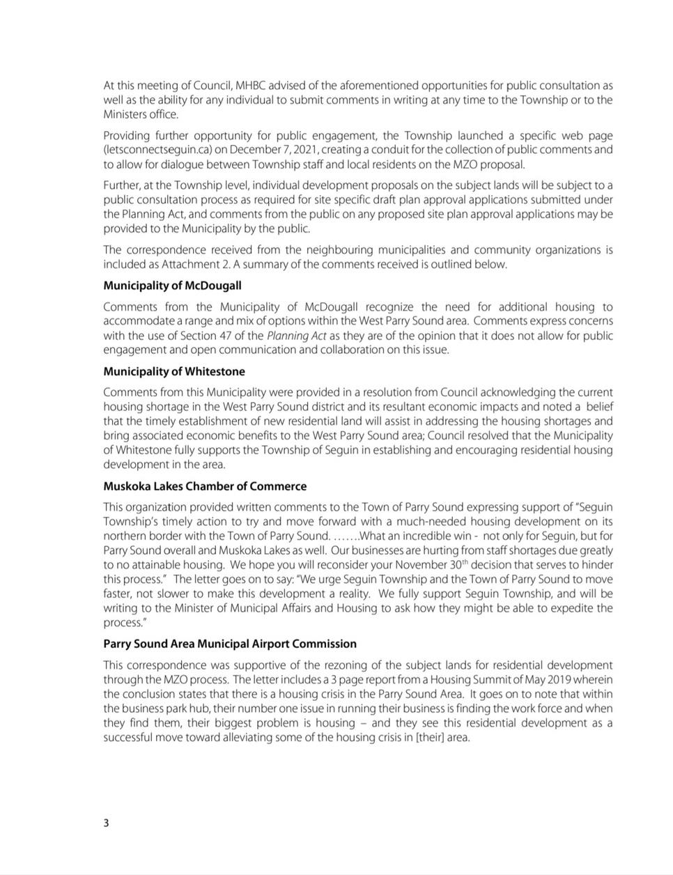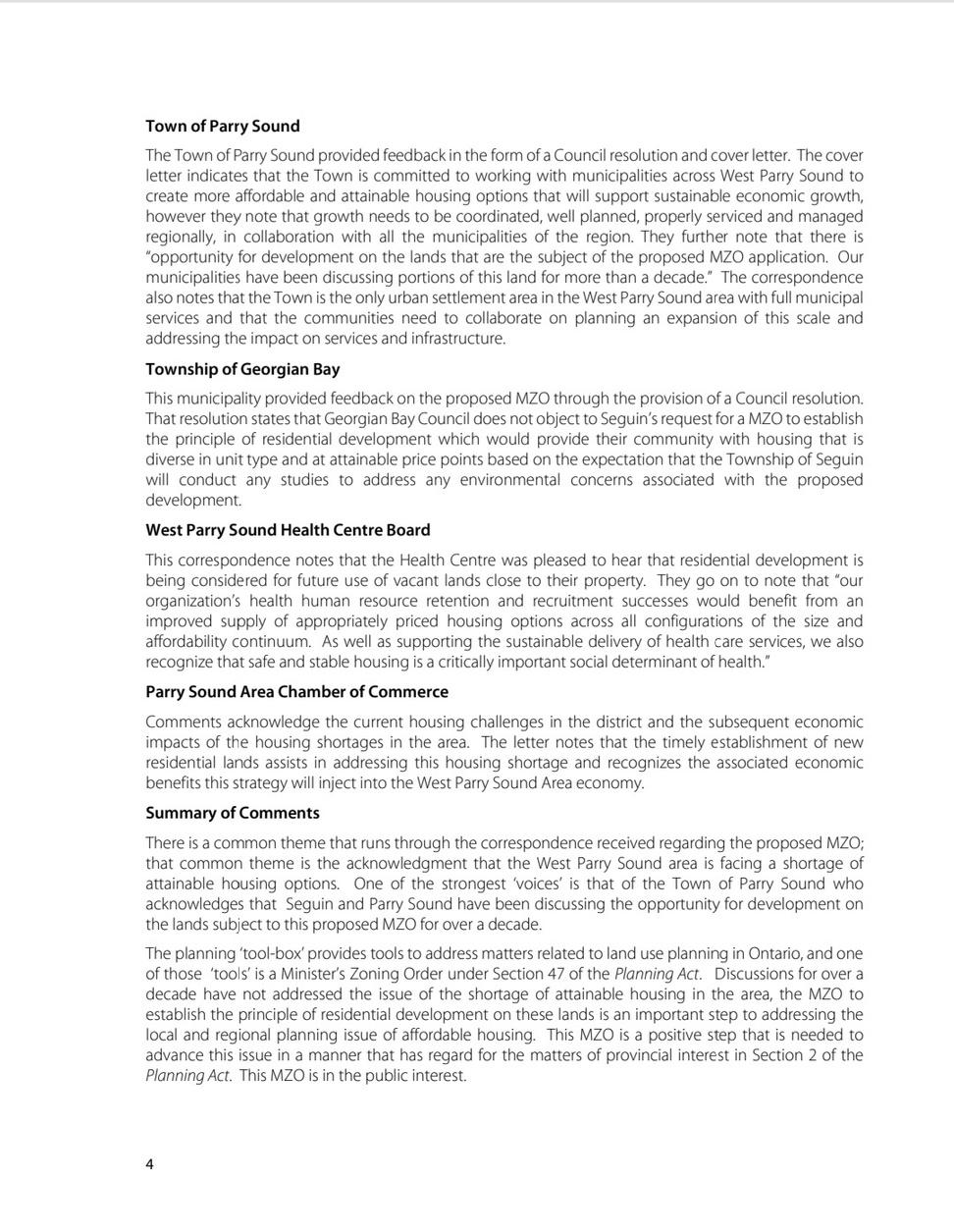 Part of the Seguin Township MZO settlement area