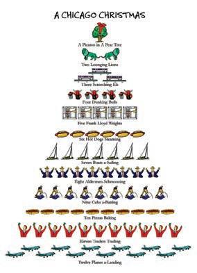 A Partridge in a Sugar Maple Tree; 2 Iced Kringles; 3 Fried Foods; 4 Brewing Beers; 5 Golden Rounds; 6 Fests a-Celebrating; 7 Sleds a-Sliding; 8 Cheeseheads Cheering; 9 Brewers Batting; 10 Boats a-Floating; 11 Packers Leaping; 12 Brats a-Barbecuing Happy Holidays