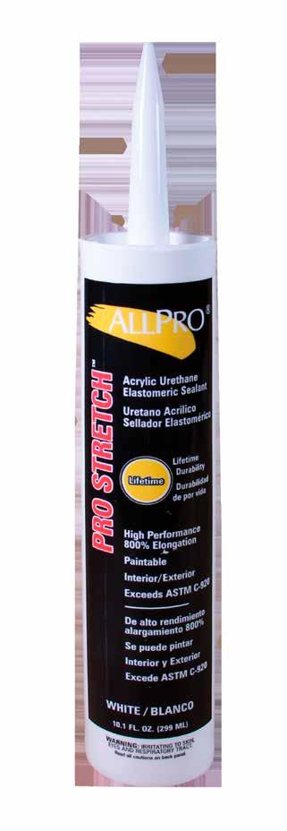 PRO STRETCHTM is an Acrylic Urethane elastomeric sealant engineered to withstand wear, weather, and water with ease. Its exceptional strength and durability provide lifetime performance, ensuring your work stays protected in the toughest conditions. With the ability to fill gaps up to 2" wide and boasting 800% elongation, Pro Stretch offers the flexibility and resilience you need on any job site.