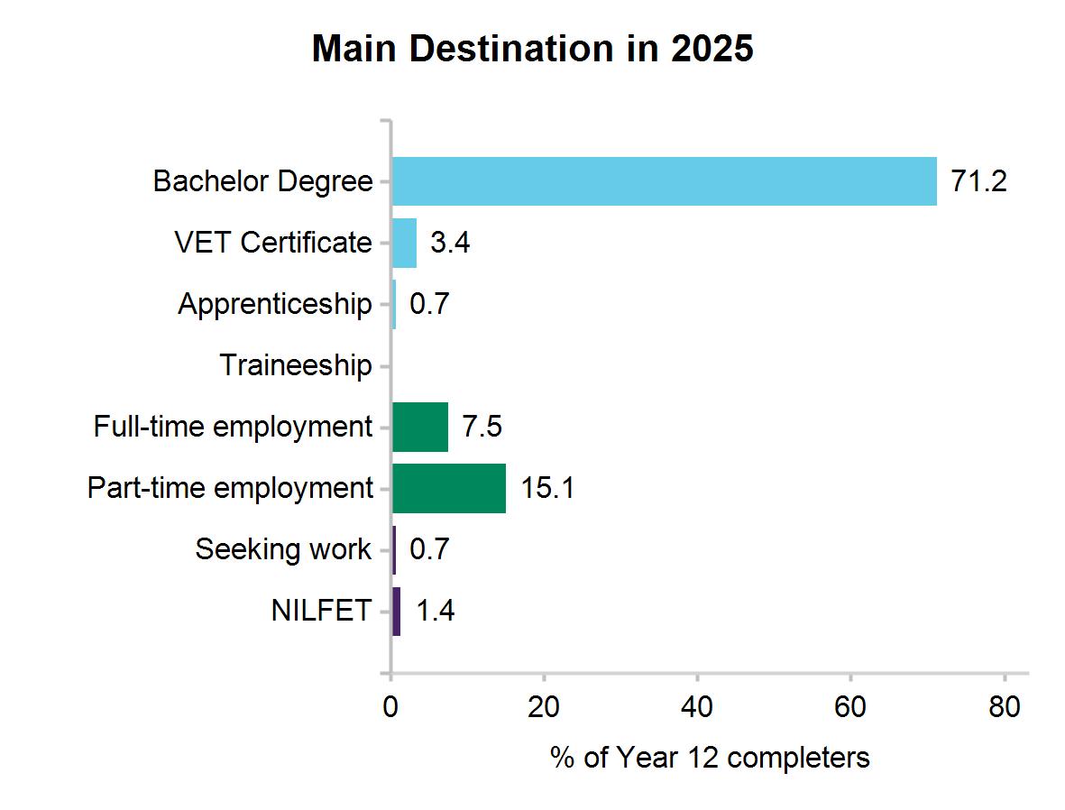 146 out of 216 Year 12 completers from this school responded to the2025 survey. Results may not be representative of all Year 12 completers at this school.