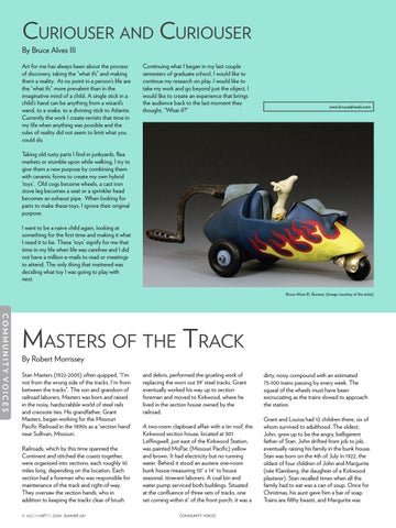 Stan Masters (1922-2005) often quipped, “I'm not from the wrong side of the tracks, I'm from between the tracks”. The son and grandson of railroad laborers, Masters was born and raised in the noisy, hardscrabble world of steel rails and creosote ties. His grandfather, Grant Masters, began working for the Missouri Pacific Railroad in the 1890s as a 'section hand' near Sullivan, Missouri. Railroads, which by this time spanned the Continent and stitched the coasts together, were organized into sections, each roughly 10 miles long, depending on the location. Each section had a foreman who was responsible for maintenance of the track and right-of-way. They oversaw the section hands, who in addition to keeping the tracks clear of brush 17 ALLTHEARTSTL.COM SUMMER 2017