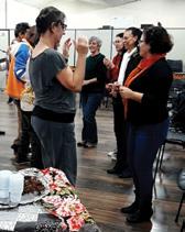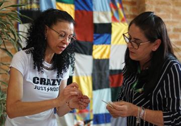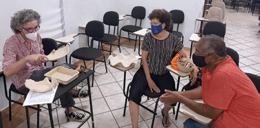 Desde a etapa de diagnósticos, que é o momento em que fazemos nossas primeiras descobertas, buscamos conhecer um pouco da cultura local e seus artistas, olhando atentamente para o setor artesanal. Nessa etapa de reconhecimento do território, e sobretudo de aproximação com as pessoas que integrarão o projeto, a atenção recai toda sobre a escuta. Perguntamos sobre suas necessidades e sonhos, escutamos sobre seus processos de criação e desenvolvimento de produtos, trocamos ideias sobre melhorias possíveis na produção e na divulgação do trabalho.
