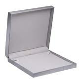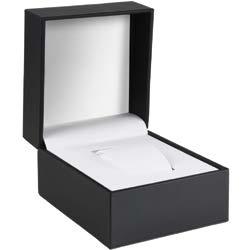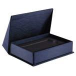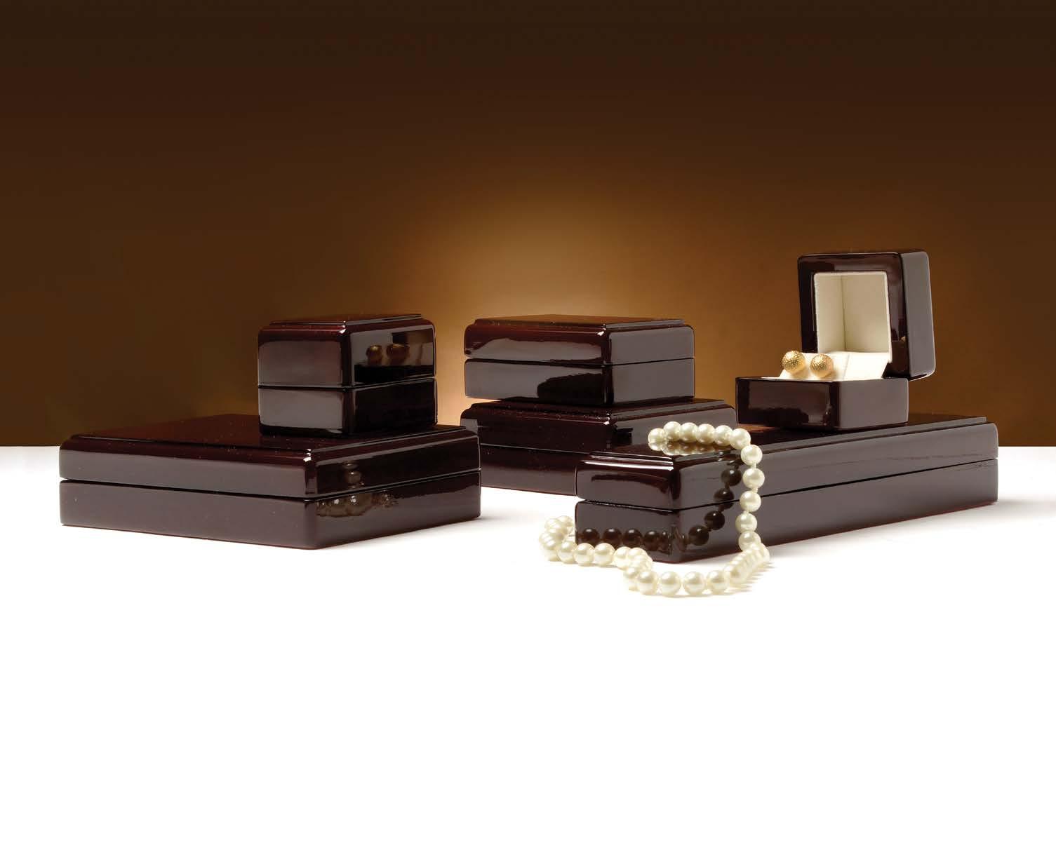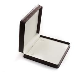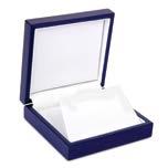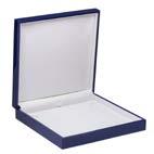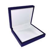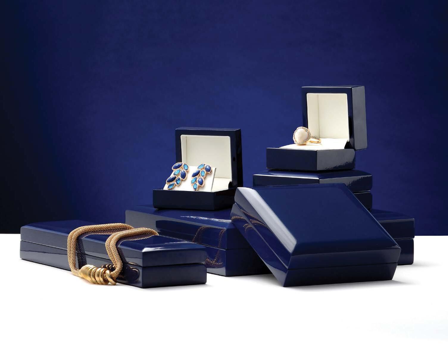 The Imperial Collection offered in bold blue, silver, or black with a high polish finish and plush leather interior is sure to impress. Your customers will revel with fine jewelry presented in these quality boxes. The rounded beveled detail tops reach far beyond the basic box. Choose from seven sizes to accommodate any piece in your inventory.