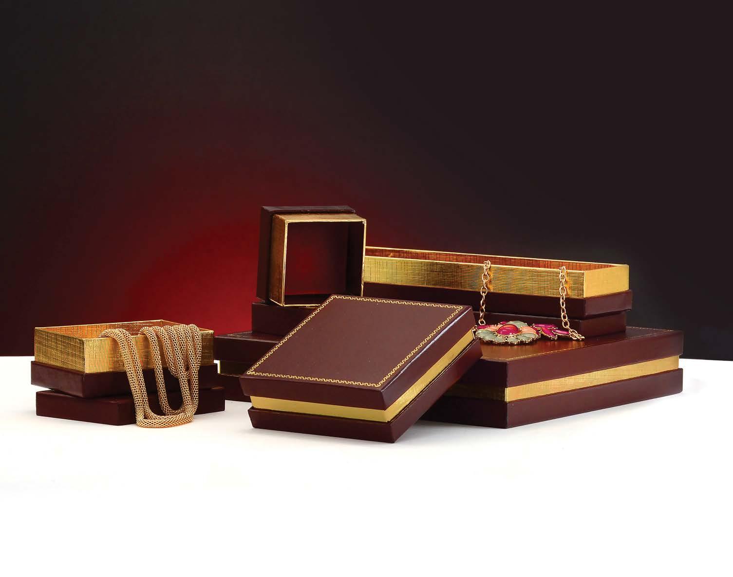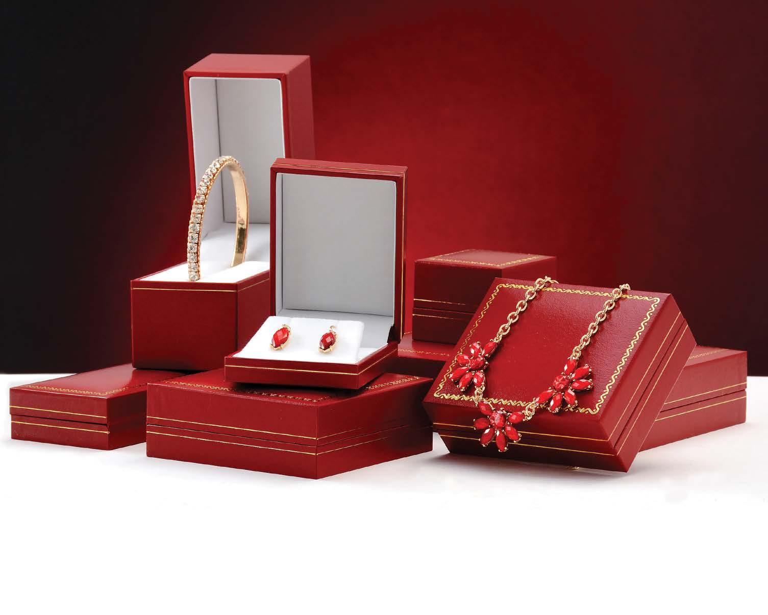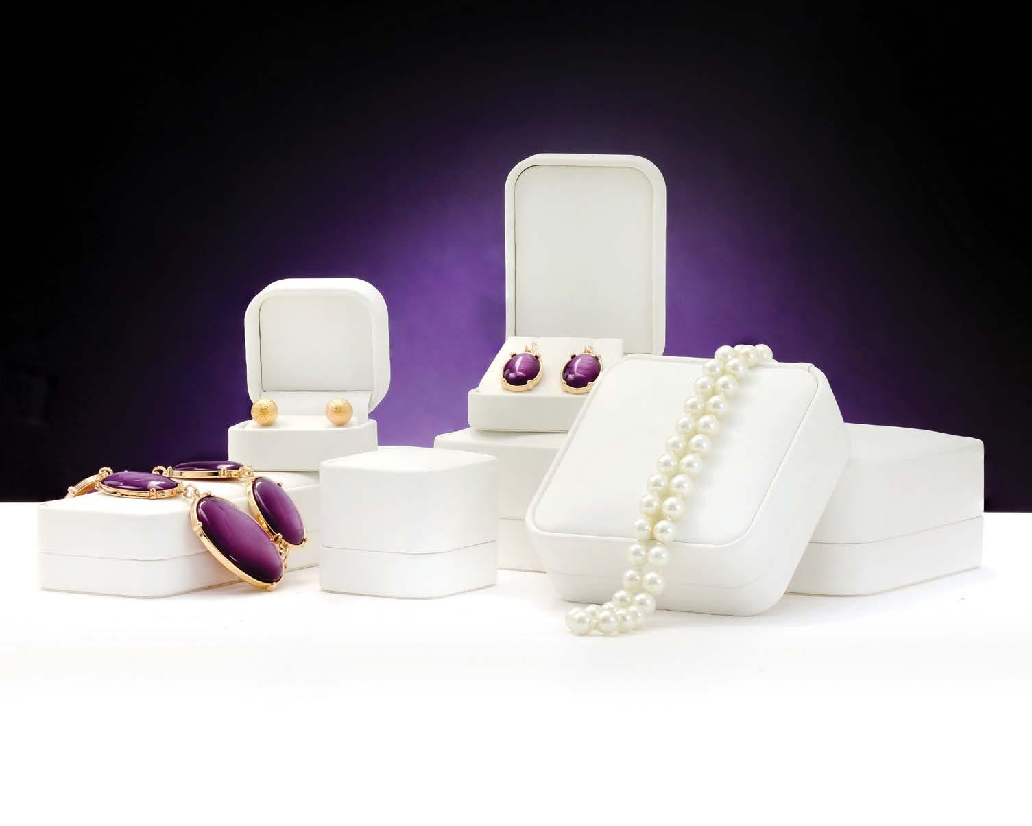 The Splendor Collection's earmarks are the rich cream outer boxes that are elegantly tied with a satin bow. The boxes are crafted from supple leatherette with corresponding color interiors in the same leatherette. The Supreme Collection also contains a double ring box that is appealing to many for engagement sets or the like. These boxes will express your gratification to the customer while adorning the gift within.