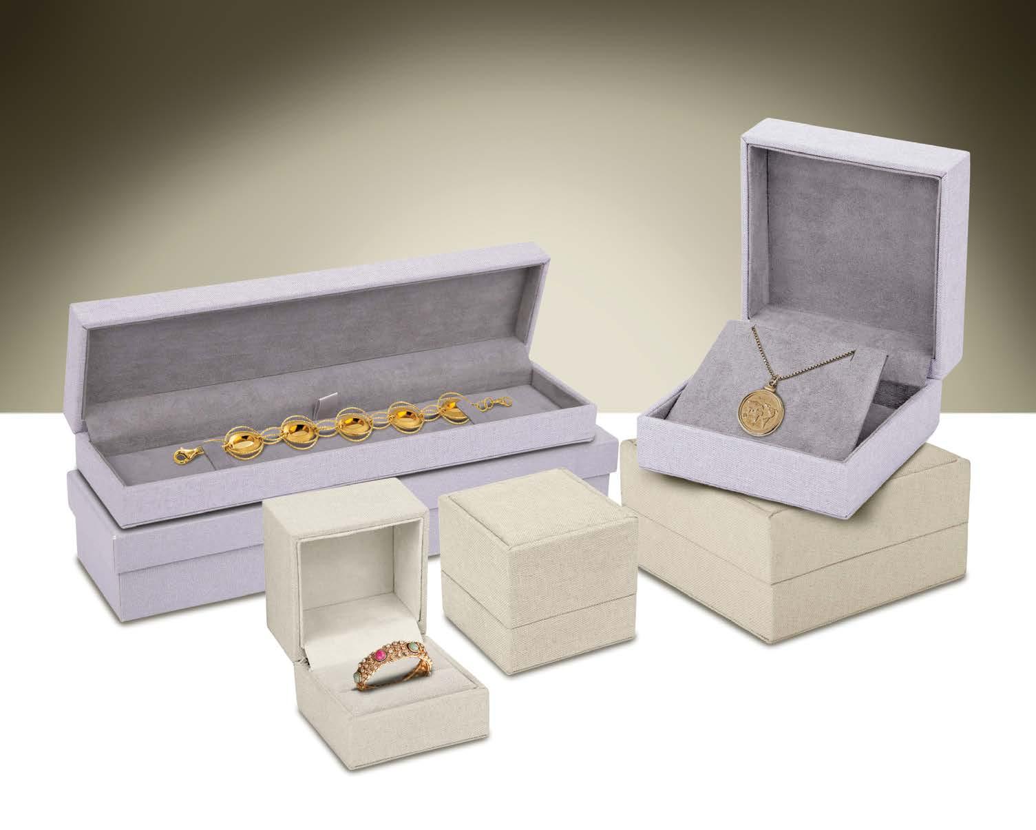 An Allure exclusive, the brand new shape and atypical weave texture of the Contemporary Collection make this an outstanding choice for a signature box for your store. The trendy metallic colors are fashionable without being too flashy, keeping you at the cutting edge. Seven different sizes, soft velour inserts, and four colors give you all of the options you need to package your treasured jewelry collections.