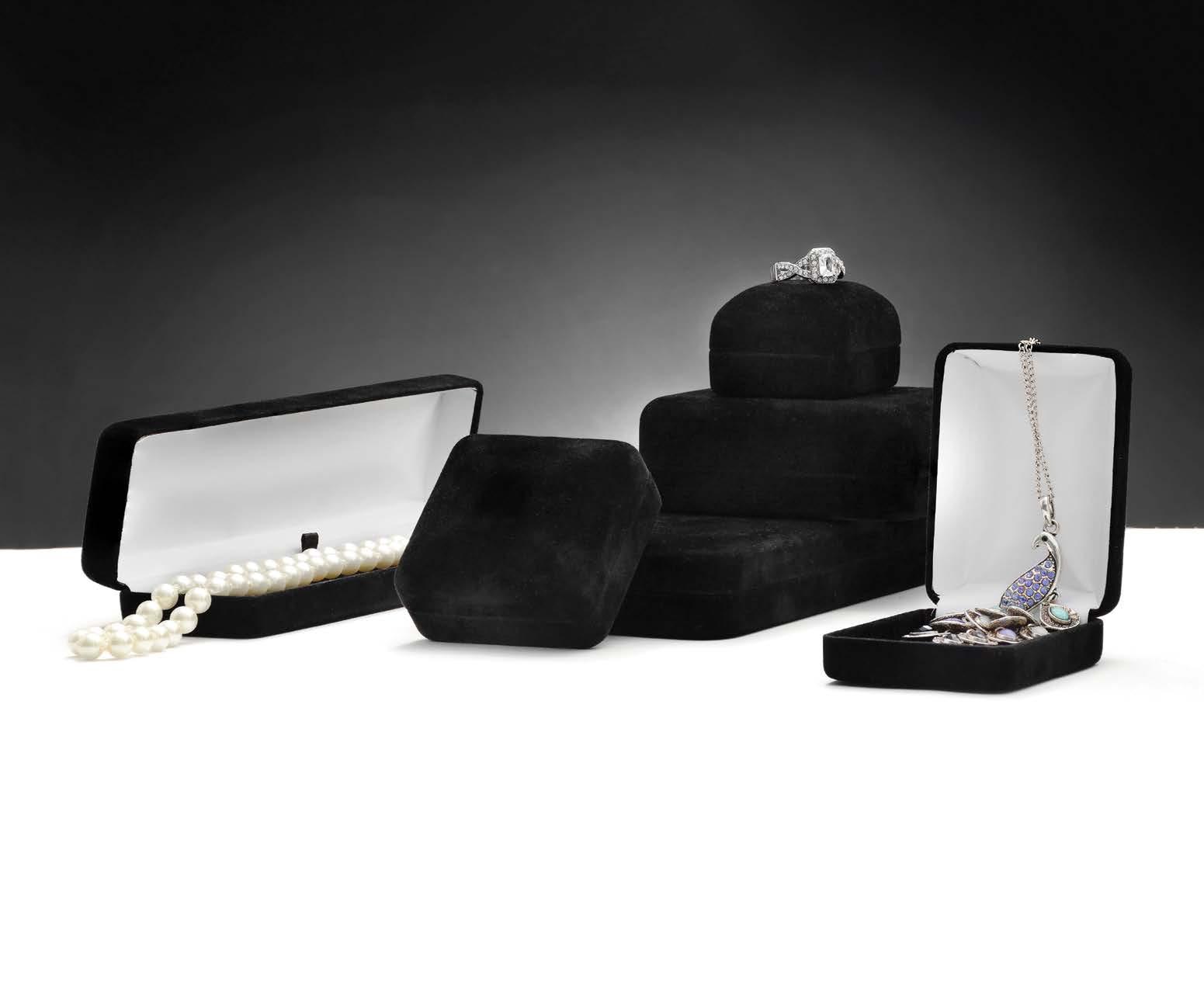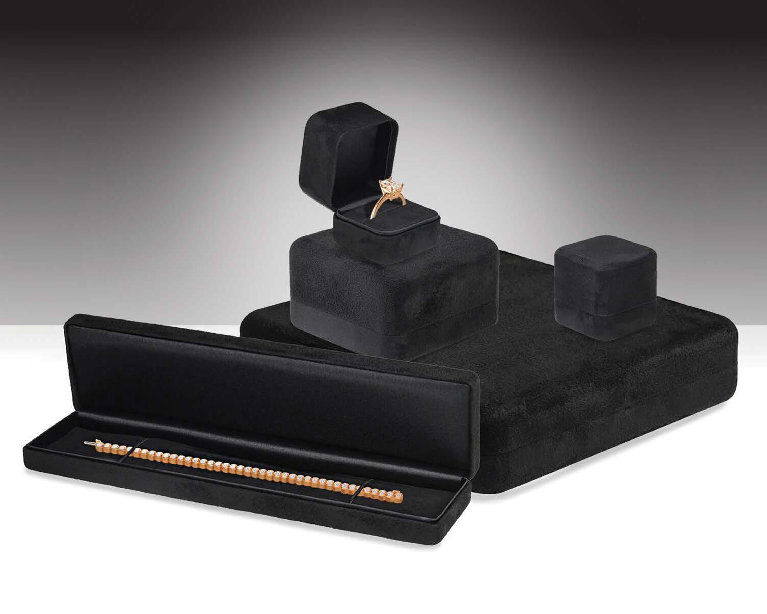 Ultrasuede is well-known in the fashion and luxury textile industry as a premium alternative to natural suede. Feathery-soft to the touch, these ultrasuede jewelry boxes in our Posh Collection excel at complementing fine jewelry with a luxury presentation. The Posh collection boxes open on a hinge to more buttery softness, ready for nestling gleaming jewelry. To further enhance your selling experience, the outer box features a suede texture in the same rich black.