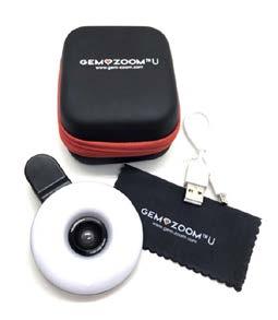 Includes: GEM-ZOOM U, a protective case, wide angle lens, USB charging cable, and a guide. visit gem-zoom.com for more info TS-29.936