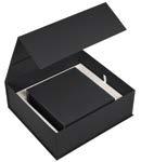 These presentation boxes revamp boxed elegance with a smooth-touch outer material and a soft-suede inner material. They are ideal as an extra protection when shipping a jewelry box, and they also provide the ultimate unboxing experience! These boxes open to reveal a perfectly sized opening that will safely hold a jewelry box part of our Vogue collection, appearing as the ultimate set.