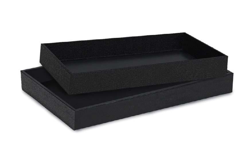 Ultra smooth finish on the outer paper gives the crisp edges of the Vogue Collection an aura of luxury, which continues into the box with a deluxe suede interior. The hard matching outer sleeve along with the suede interior adds a professional touch. This distinctive box is available in ten functional shapes. The new modern dark grey color is a unique Allure addition.