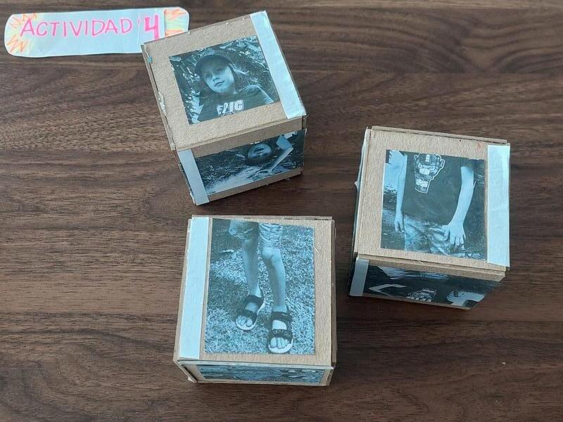 Cadaniñoelaborasu rompecabezascon fotografíasymaterial.