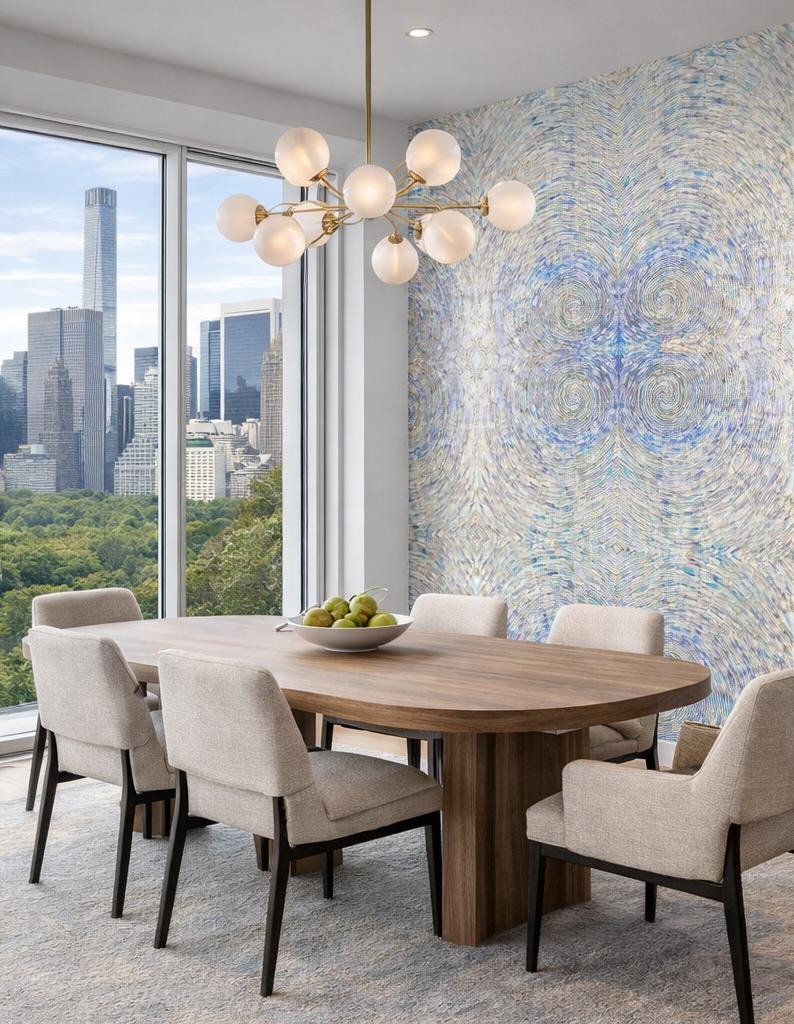 Inspired by natural flow—water, wind, and reflection— the surface designs emphasize visual rhythm, layered depth, and compositional balance. Each pattern is developed as an atmospheric backdrop rather than