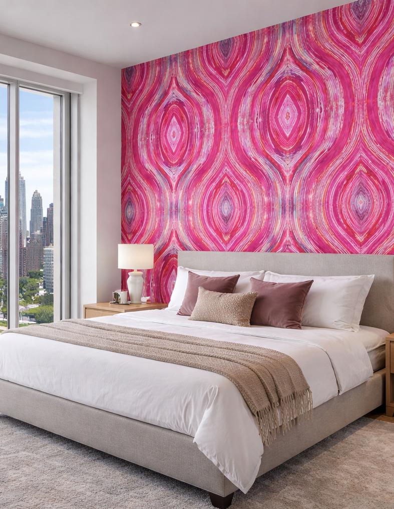 a focal graphic, allowing it to translate fluidly across textiles, wallpaper, tabletop, and accessories while remaining versatile in scale and color.
