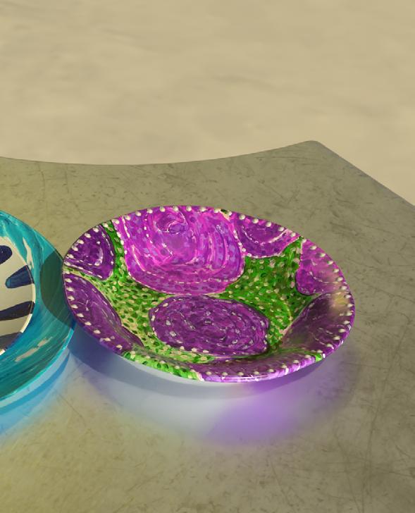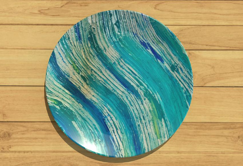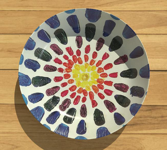 I tried to seek happiness by creating playful and colorful art to bring peace and positivity into my space. It inspired a collection with texture, movement, and reflection of light through foil. Bring light onto your space with Ally Bee’s tableware, furniture, and art.