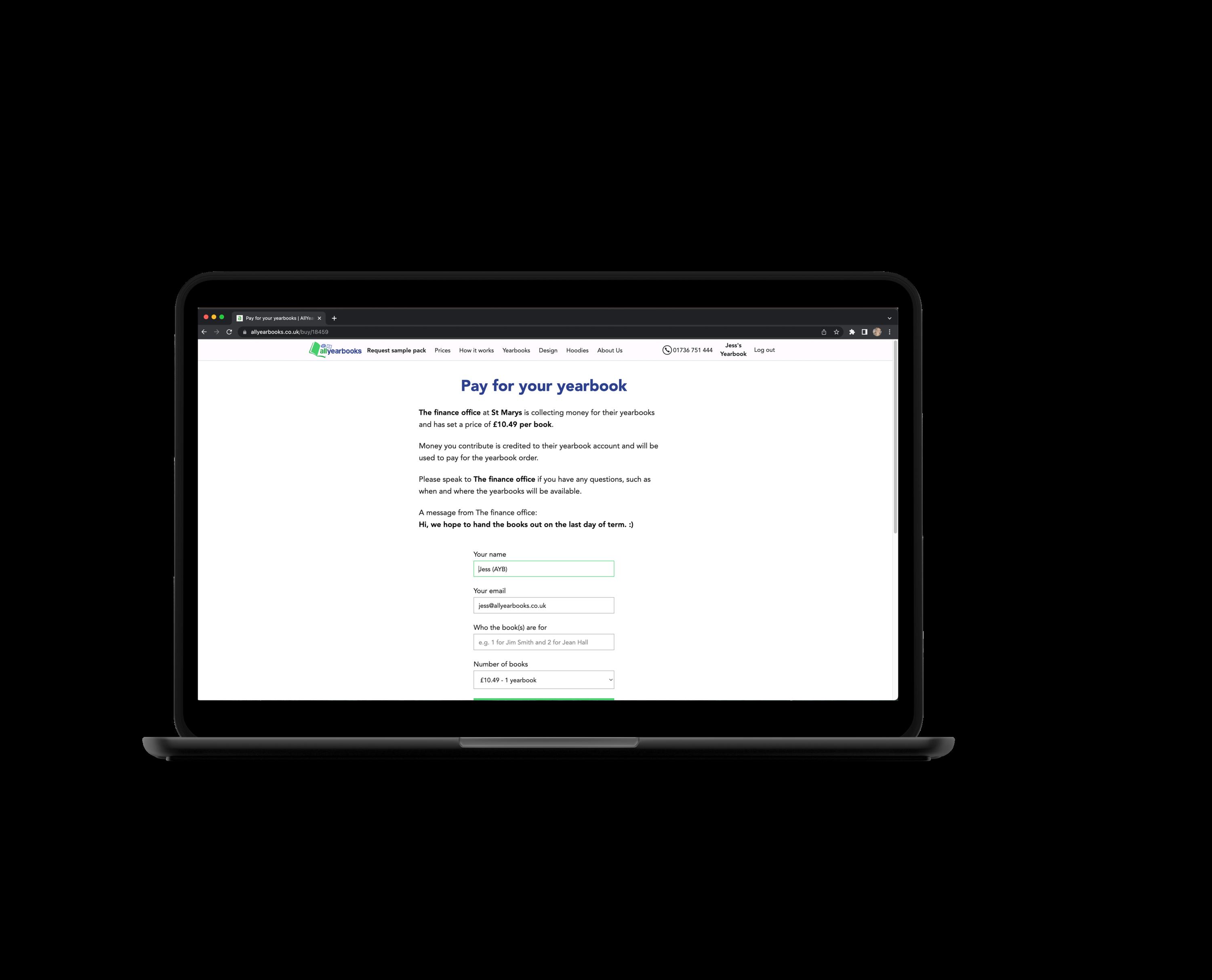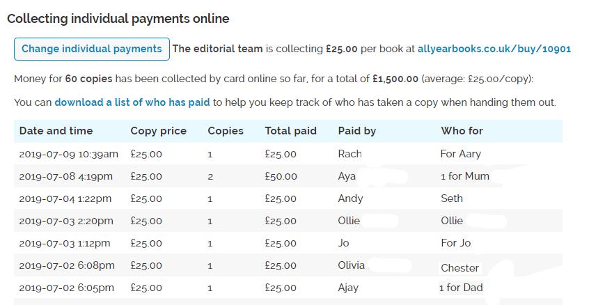 Our system collects a list of all the students that have paid, which you can download at the end of your project. This makes handing the yearbooks out a lot easier.