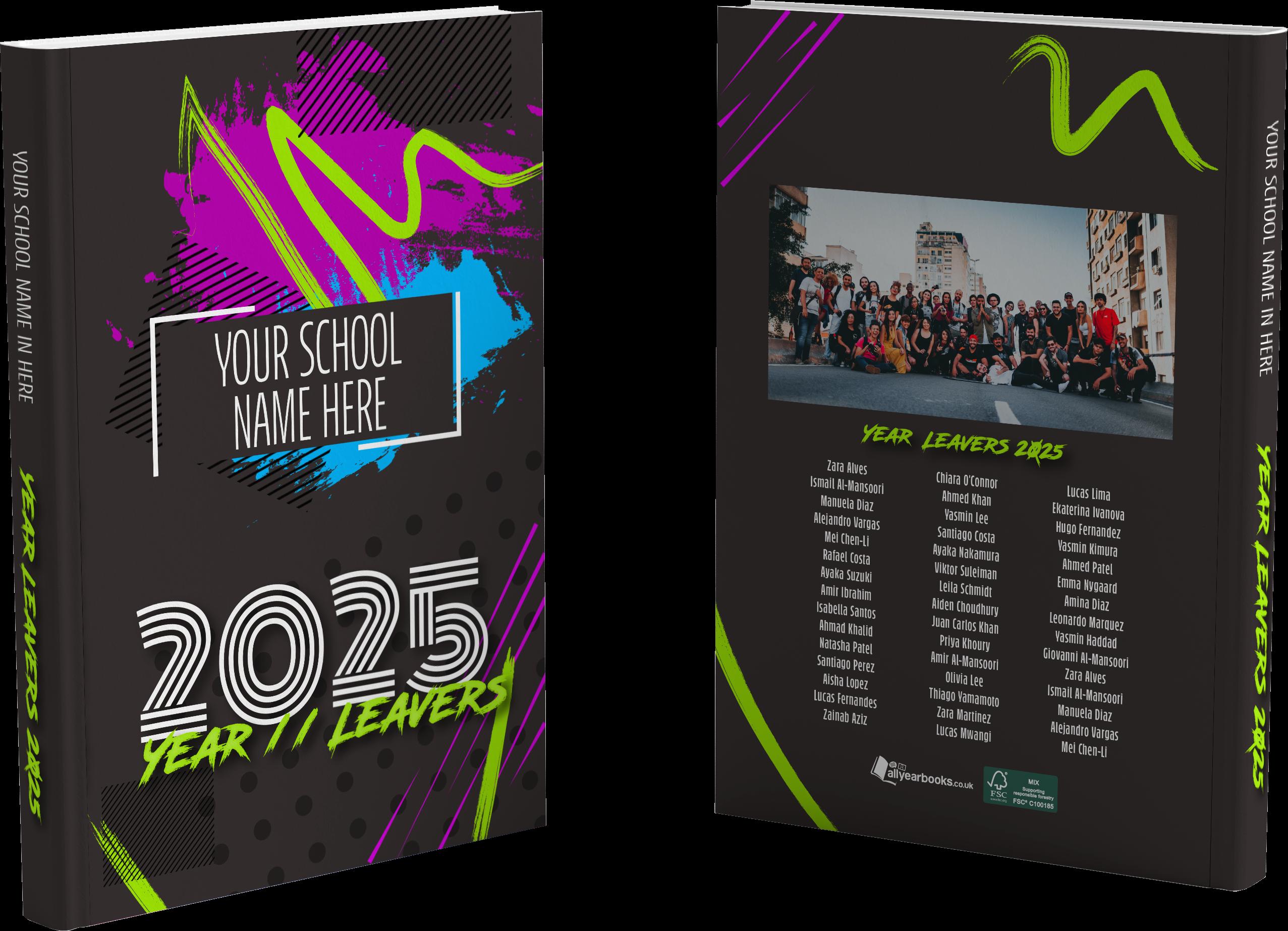 Select from our cover templates, and our designer can personalise them using your school or group's distinctive colours. If you prefer to include names and numbers on the back of your yearbook, just inform your designer.