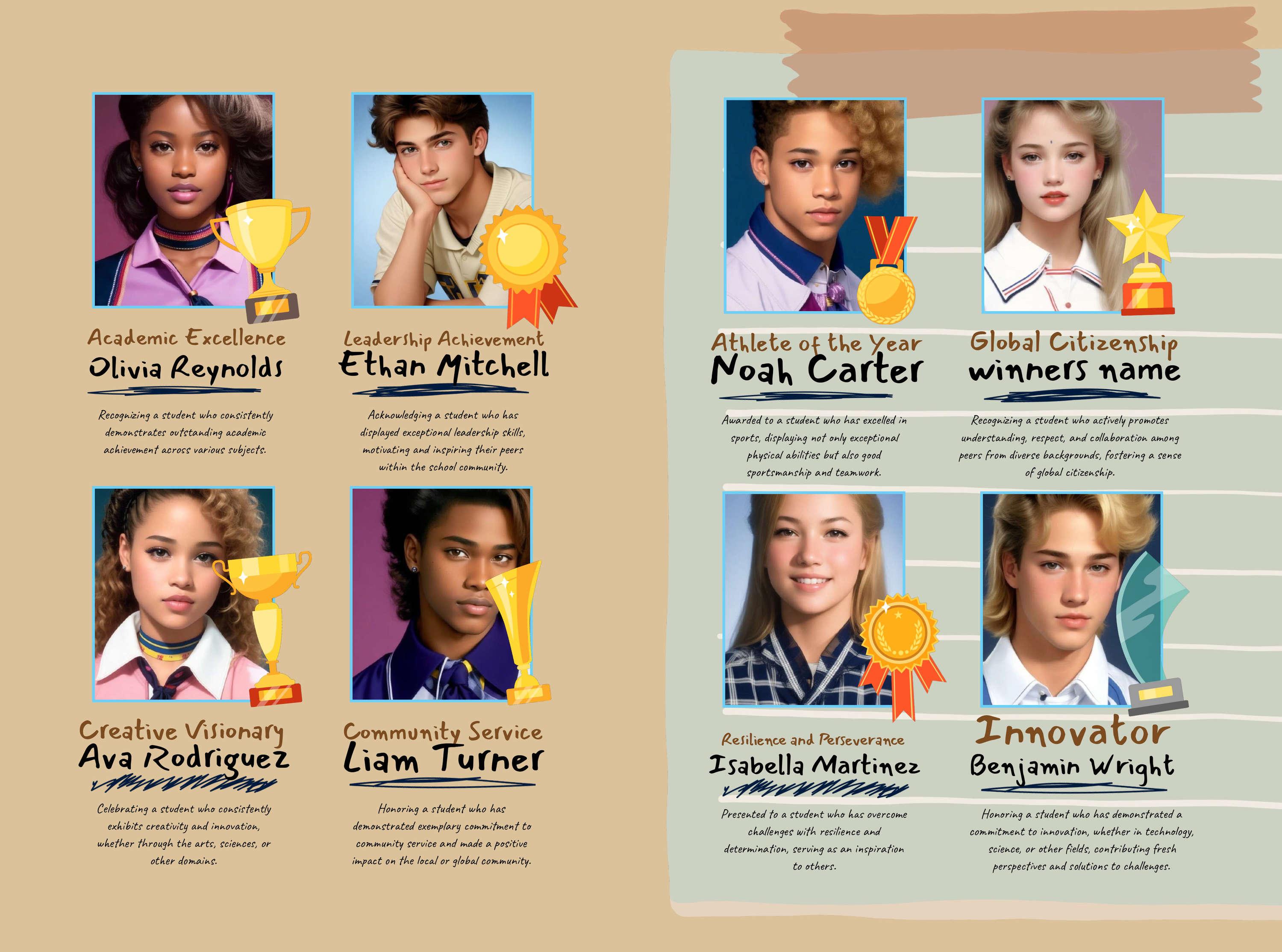 Of course, we have pre-designed award layouts ready for you to use in your yearbooks - but did you know we have lot's of award styles to choose from too? Sometimes it's not all about the winner, we need to know who those runner-ups were.