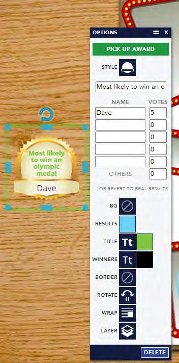 Select your page > 'Awards' > Drag the award onto the page to customise