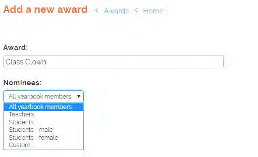 Students or parents can log in and answer profile questions, upload photos and vote on awards.