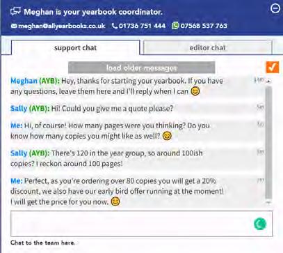 We have access to your book while you're working on it so we can jump in and help straight away! Find the chat box on the bottom right of your yearbook screen.
