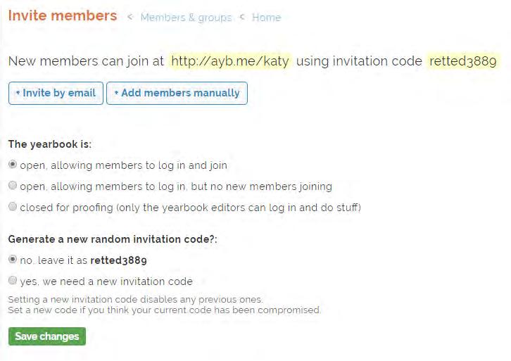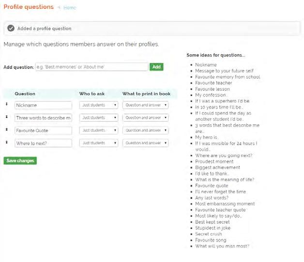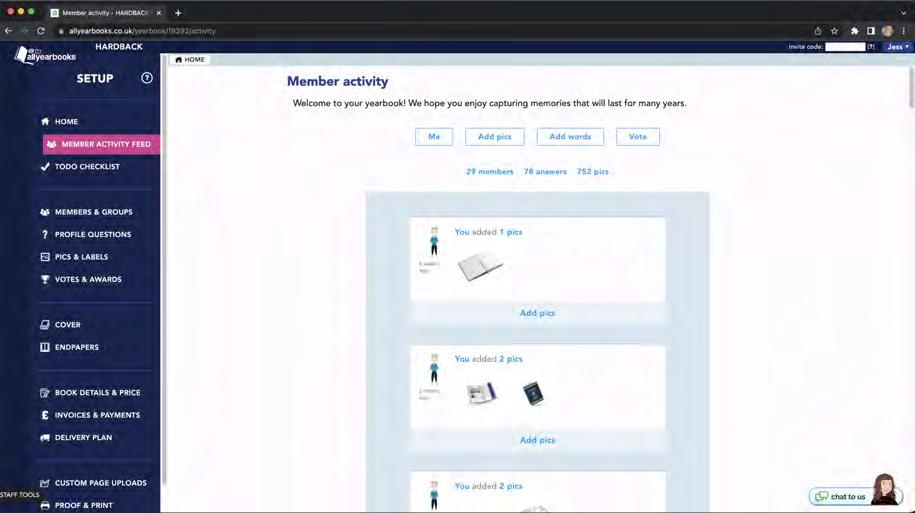 your book's invite code Adding profile pages Adding profile questions Adding award categories Putting awards on a page Uploading photos Uploading custom pages Adding collage pages Adding article pages Changing colour palette