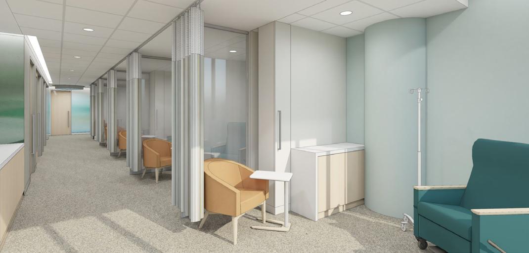 The infusion spaces provide flexible seating options that give patients control of their treatment experience and provides access to nurses for users to ask questions.