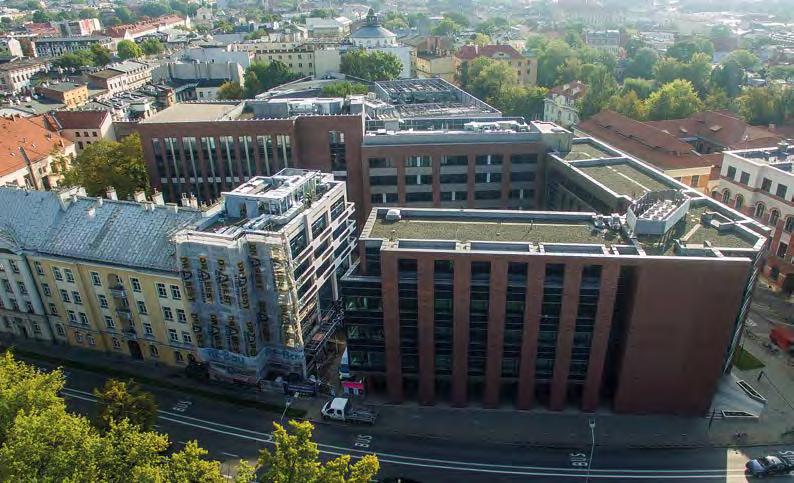 Innowacyjnej Edukacji Medycznej UJ CM. Trwają ostatnie ustalenia, które dotyczą pierwszego etapu realizacji dużego zadania inwestycyjnego określonego jako „Moder nizacja i rozbudowa istniejącego kampusu UJ CM w Krakowie-Prokocimiu”. Pamięta my także o znaczeniu terenów sportowych w rozwoju Uczelni. Dlatego z radością obserwujemy kolejne etapy budowy Uczel nianego Centrum Sportowo-Rekreacyjnego UJ wraz z terenami rekreacyjnymi na terenie Kampusu 600-lecia Odnowienia UJ i modernizację obiektów sportowych przy ul. Piastowskiej. Mimo znanej nam wszystkim niepewności na rynku budowla nym mamy nadzieję, że jeszcze w tym roku rozpocznie się przebudowa i modernizacja budynku Centrum Kultury „Rotunda” przy ul. Oleandry 1.