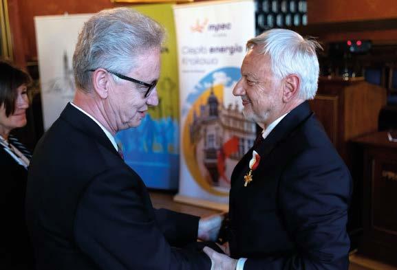 dziedzinach osobom działającym zarówno w Kraju Kwitnącej Wiśni, jak i poza jego granicami. – Jestem bardzo szczęśliwy, że to właśnie mnie przypadł w udziale zaszczyt wręczenia Panu Rektorowi tego odznaczenia. Mam nadzieję, że relacje i współpraca Uniwersytetu Jagiellońskiego i Japonii będą się nadal umacniać – dodał ambasador.