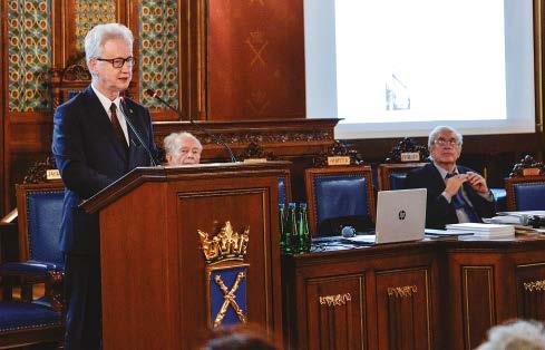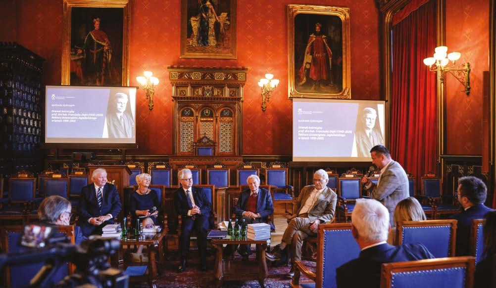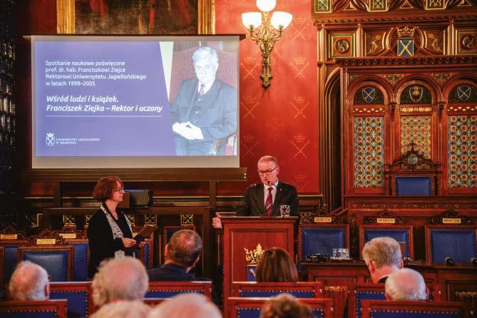 Bieżące wydanie pisma, w dużej mierze, poświęcone zostało jednemu z najbardziej zasłużonych rektorów we współczesnych dziejach Uniwersytetu Jagiellońskiego – prof. Franciszkowi Ziejce, którego Uczelniane Kolegium Elektorów wybrało na to stanowisko dokładnie 25 lat temu – 22 kwietnia 1999. Jednak to nie tylko ten znaczący fakt stał się powodem, dla którego właśnie w tym numerze postać Profesora i jego liczne dokonania na różnych polach przypomniane zostały z tak dużym rozmachem. Profesor zmarł 19 lipca 2020, podczas trwania pandemii COVID-19, tuż przed swoimi 80. urodzinami. Planowane na październik 2020 uroczystości jubileuszowe nie zostały zrealizowane. Nie wybrzmiało też głośno, że ostatnie lata życia Profesora naznaczone zostały dziesięcioletnim procesem lustracyjnym, który całkowicie zrujnował jego zdrowie i w efekcie doprowadził do przedwczesnej śmierci. Szczęśliwie, proces zakończył się uwolnieniem Profesora od wszelkich postawionych mu przez IPN zarzutów i ostatecznie – uniewinnieniem. Szczegółowo opisał to prof. Bogusław Górka w swej książce Uporczywa lustracja prof. Franciszka Ziejki. Ukazanie się tej publikacji w 2023 roku zainspirowało władze UJ, a w szczególności rektora prof. Jacka Popiela, do zorganizowania w auli Collegium Novum dwóch ważnych wydarzeń, w tym publicznej debaty przypominającej dramatyczną walkę Profesora o prawdę. Stąd też w bieżącym numerze to właśnie na relacje z obu tych spotkań położony został najmocniejszy akcent. Do zapoznania się z tekstami poświęconymi prof. Franciszkowi Ziejce i ilustrującymi je dokumentami gorąco zachęcam! Polecam też artykuły poświęcone: sensacyjnym odkryciom archeologów z UJ w amerykańskim stanie Kolorado, badaniom naukowym laureatek stypendium L’Oreal-UNESCO 2023, międzynarodowemu projektowi badawczemu „EU NAVIGATE”, opracowanemu w celu wspierania pacjentów onkologicznych, społecznemu projektowi „Seniorpedia.pl – Razem! Chętnie! Wzajemnie!”, zagadnieniom dotyczącym profilaktyki chorób układu krążenia, sztucznej inteligencji, a także najzdolniejszym studentom UJ: laureatom czterech Własnych Funduszy Stypendialnych, złotym medalistom z Wydziału Matematyki i Informatyki oraz najlepszemu kołu naukowemu w Polsce – Studenckiemu Kołu Naukowemu Terapii Celowanej i Układów Supramolekularnych. Warto też zwrócić uwagę na wywiad z absolwentem UJ dr. hab. Krzysztofem Ptakiem, zastępcą dyrektora w Office of Cancer Centers, National Cancer Institute (NIH) w Bethesda, Maryland, USA, jak również na teksty poświęcone: historykowi prawa prof. Adamowi Vetulaniemu, kompozytorowi Franciszkowi Mireckiemu oraz grafikowi, ilustratorowi i fotografowi Adamowi Korpakowi, mieszkającemu obecnie na fińskiej wyspie Kimito. Czytelników zainteresowanych dziejami Uniwersytetu Krakowskiego i ciekawych, który z jego rektorów sprawował tę funkcję aż 17 razy, zachęcam do zapoznania się z kolejnym odcinkiem cyklu „HistoriUJemy”. Mam też nadzieję, że sympatykom „Alma Mater” spodobają się przygotowane specjalnie dla nich niespodzianki fotograficzne.