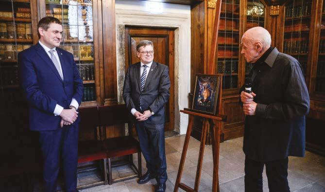 prof. Stanisław Waltoś zamówił je u tego artysty. – Na wszystkich obrazach jest piękna kotara, która najprawdopodobniej symbolizuje to, że każdy z tych gigantów odsłaniał różne tajemnice wszechświata – dodała Desisława Christozowa-Gurgul. W ten sposób, po kilku dekadach, malarski tryptyk został dopełniony.
