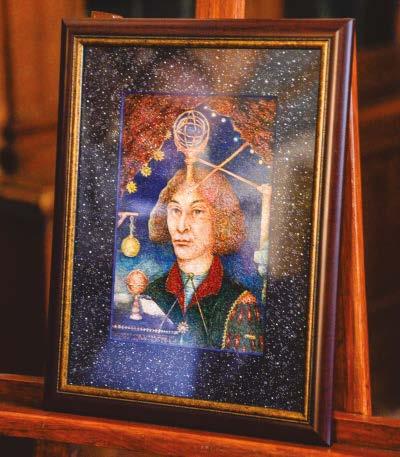 armilarna – niczym drzewo mądrości. Na przestrzeni lat zmienił się sposób, w jaki artysta maluje twarze, ciała. Robi on na skórze sztuczne krakelury, drobną siateczkę spękań, która, jak zmarszczki, przypomina o upływie czasu. Pewnym novum są również ręcznie robione dla obrazów passe-partout, które stanowią ich kolorystyczne dopełnienie, a bogactwo dekoracyjnych motywów zachwyca. W przypadku Kopernika jest to, oczywiście, ciemne niebo usiane drobnymi gwiazdami – opowiadała o portrecie Desisława Christozowa-Gurgul. Muzeum posiada już w zbiorach dwa portrety autorstwa Władysława Szyszki z tego cyklu – Izaaka Newtona i Galileusza. Przeszło 40 lat temu ówczesny dyrektor Muzeum UJ