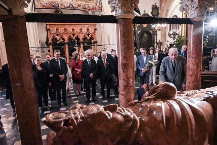 utworzenia Uniwersytetu Krakowskiego, jest okazją, żeby po raz kolejny docenić ponadczasowe znaczenia tej decyzji. Zgodnie z naszą tradycją rano w katedrze wawelskiej złożyliśmy wiązanki kwiatów nie tylko na sarkofagu Kazimierza Wielkiego, ale i władców, którym zawdzięczamy odnowienie Uniwersytetu – króla Władysława Jagiełły i królowej Jadwigi. Oni także byli przekonani, że siła państwa, jego rozwój, suwerenność, uznanie w świecie są ściśle powiązane z rozwojem krakowskiego uniwersytetu, jagiellońskiego uniwersytetu. Nasze dzisiejsze spotkanie przy grobie królowej Jadwigi miało szczególne znaczenie. W bieżącym roku przypadają bowiem trzy ważne rocz-