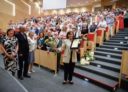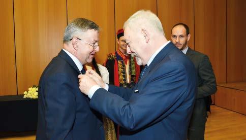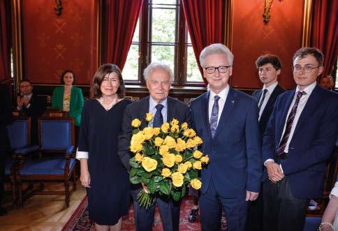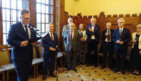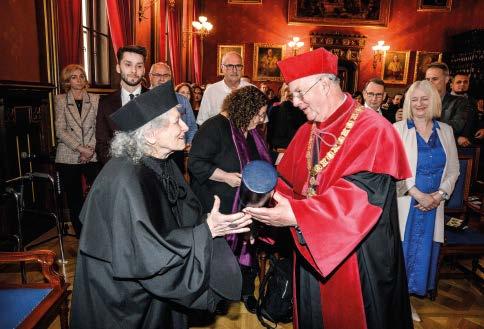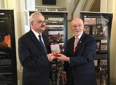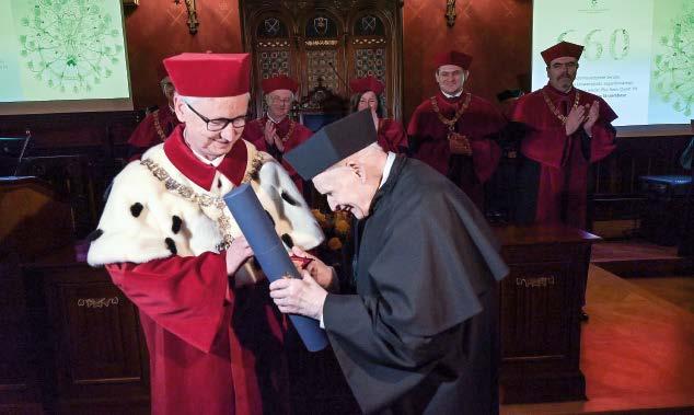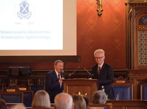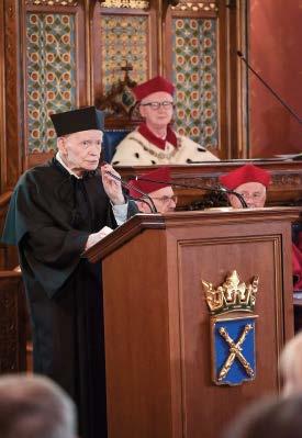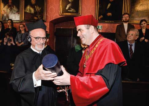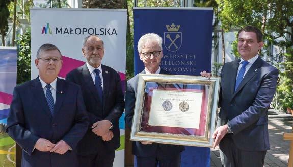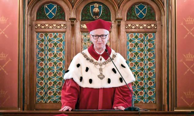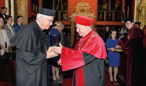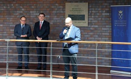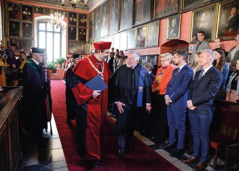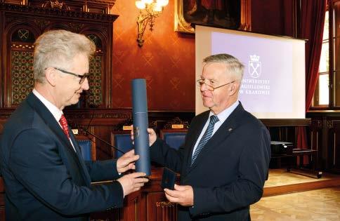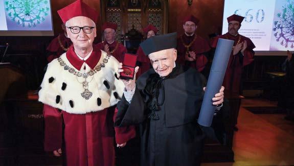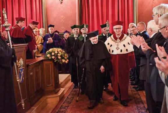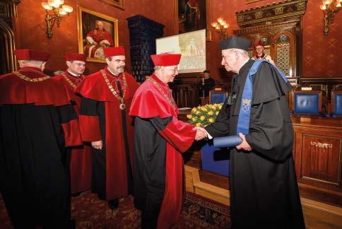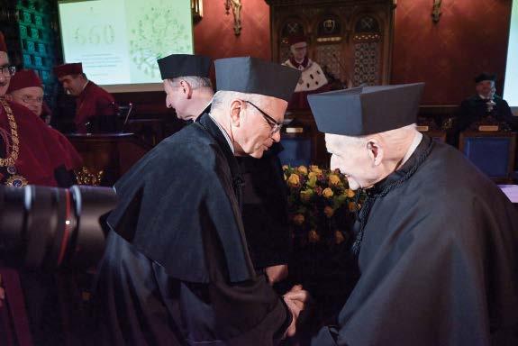 śmy bardzo wzruszeni i dumni, że to właśnie w tak ważnym dla Uczelni dniu mogliśmy uhonorować znakomite osiągnięcia Profesora. Życzył Mu zdrowia i wszelkiej pomyślności. Wszystkim gościom podziękował za obecność. – Cieszmy się, bo Uczelnia od 660 lat nieprzerwanie wypełnia swą misję – akcentował. Podziękował także za wszystkie życzenia i gratulacje skierowane do całej społeczności akademickiej Uniwersytetu Jagiellońskiego, jakie nadeszły z okazji Święta Uczelni. Słowa wdzięczności skierował też do księdza kanonika Pawła Barana, proboszcza Parafii Archikatedralnej, za współuczestniczenie w ceremonii składania kwiatów na grobach fundatorów Uniwersytetu w katedrze wawelskiej.