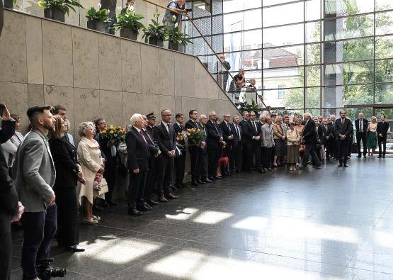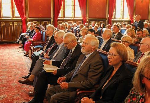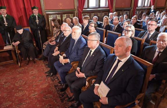 Bilińska, wiceprezes Polskiej Akademii Umiejętności prof. Andrzej Mączyński, sekretarz generalny Polskiej Akademii Umiejętności prof. Szczepan Biliński, dyrektor naczelny Filharmonii Krakowskiej im. Karola Szymanowskiego Mateusz Prendota, dyrektor Opery Krakowskiej prof. Piotr Sułkowski, dyrektor Instytutu Kultury „Willa Decjusza” prof. Dominika Kasprowicz, dyrektor Fundacji Judaica – Centrum Kultury Żydowskiej Joachim Russek, dyrektor Uniwersyteckiej Kliniki Stomatologicznej Marek Szwarczyński. Nie zabrakło także proboszcza Parafii Rzymskokatolickiej św. Anny w Krakowie księdza prof. Tadeusza Panusia, rektorów Uniwersytetu Jagiellońskiego poprzednich kadencji: prof. Wojciecha Nowaka i prof. Karola Musioła, przewodniczącego Rady Uczelni prof. Jacka Purchli oraz rektora elekta Uniwersytetu Jagiellońskiego prof. Piotra Jedynaka. Rodzinę bohatera uroczystości, prof. Adama Strzembosza, reprezentowała wnuczka Helena Strzembosz. Uniwersyteckie święto zgromadziło również niemałe grono przedstawicieli społeczności akademickiej naszej Uczelni – dziekanów wszystkich wydziałów, dyrektorów Szkół Doktorskich, członków Senatu oraz Konwentu Godności Honorowych, profesorów honorowych UJ, panią kanclerz i panią kwestor, przewodniczącą Samorządu Studentów wraz z jego przedstawicielami, prezesa Towarzystwa Doktorantów wraz z doktorantami oraz prezesa Stowarzyszenia Absolwentów UJ wraz z członkami Stowarzyszenia. Uhonorowany złotym medalem Plus Ratio Quam Vis prof. Adam Strzembosz w latach 1989–1990 był wiceministrem